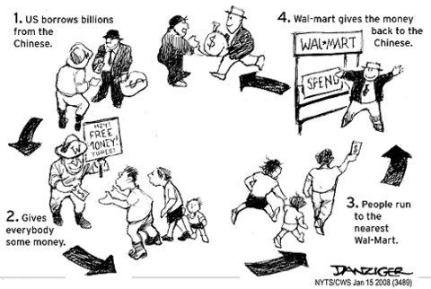 It’s an interesting take on where we’re headed as well, which is the idea of the world economy. We certainly aren’t there yet (& I think this cartoon was meant more to point out the problems & ironies than anything else), but I see this as one step in the process of figuring out how to do it properly. I like it!